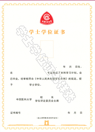 中国医科大学网教毕业证书与学位证书范本